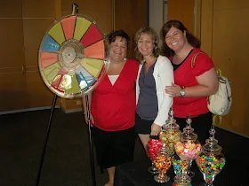 We were all laden with much more stuff than we arrived with, thanks to all those wonderful pressies we were given. A couple of people were slightly more laden than the rest of us, as they thought the milk glasses with our cookies were part of the gift! (the glasses actually belonged to the Sheraton...oops!)